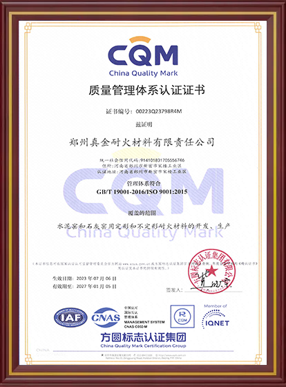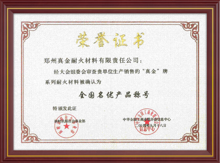 真金耐火榮譽(yù)資質(zhì)